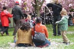 Sakura Matsuri at the Brooklyn Botanic Gardens was a well-attended event yesterday afternoon. Despite the crowds and traffic, luckily, we were able to find a parking spot on the street right near the entrance. More good karma. Just as we began to make our way towards the rows of sakura, the sun made an unexpected cameo appearance. It warmed the morning chill right out of my bird bones.