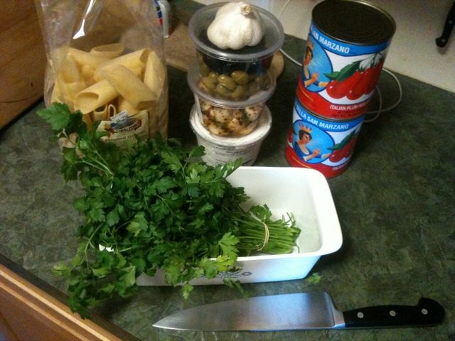With the arrival of a boxed set of Laura Ingalls-Wilder’s *Little House* series I return to the sequestered life in my rooms overlooking the Hudson reading and writing. As I’ve bean a stranger to the kitchen arts and crafts for too long, following three days tasting dishes at the new local *Saggio* restaurant, have decided by writ of craving to make myself a favourite vehicle for a favourite-r ricotta cheese — manicotti. These will be not just any It-Am Mumma’s manicotti. I am making at present in between tapping at these keys a patient and fussy sort of manicotti with a secret surprise in each one. Not so secret as I will tap for you and you and you that I am pitting by my French knife which has finally ceased efforts to remove a finger or just the tip a green sort of olive from my dearest Fairway olive bar, and by stovetop low flame fry-roast whole smashed cloves of garlic — a fine opportunity to utilize my handmade garlic smasher from the wood of a pear tree only last June felled in a windstorm somewhere on a Finger Lake (said smasher is down below in pictorial form) . . .